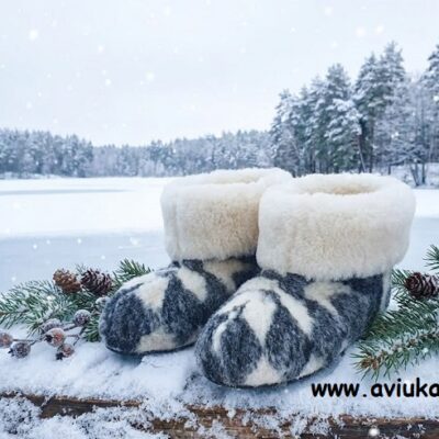Užmaunamos vilnonės šlepetės ,,Alaska red” TL1