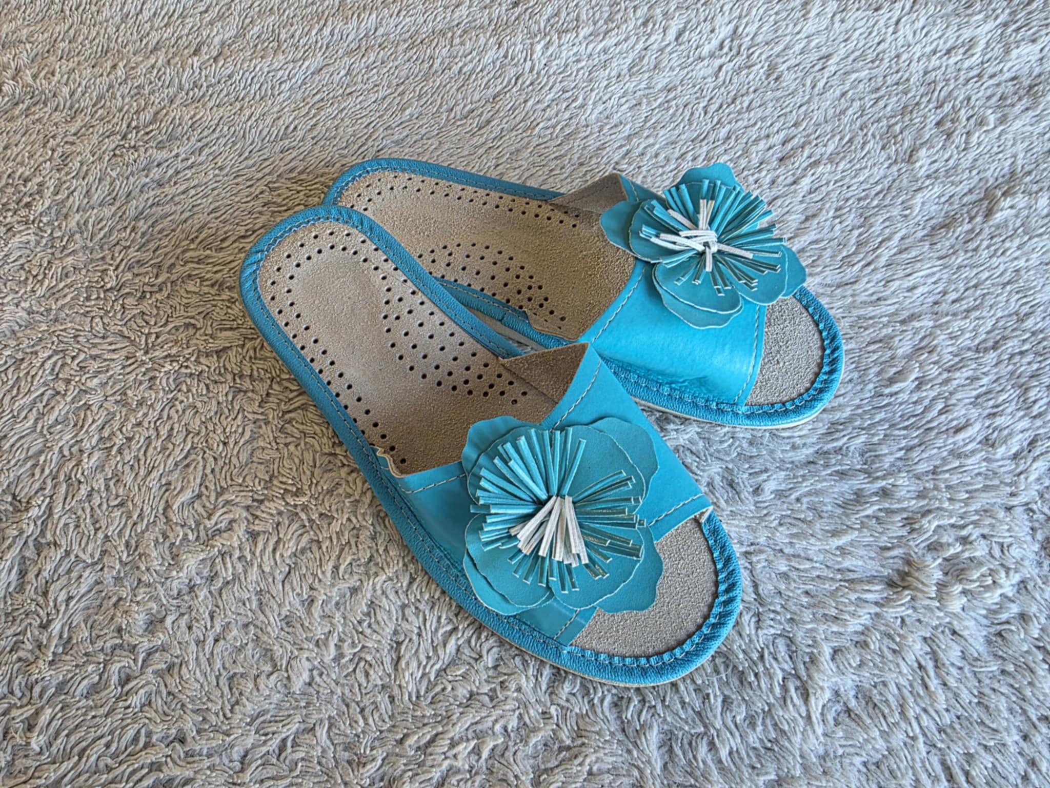 Mėtinės spalvos šlepetės ,,Rožė” P30