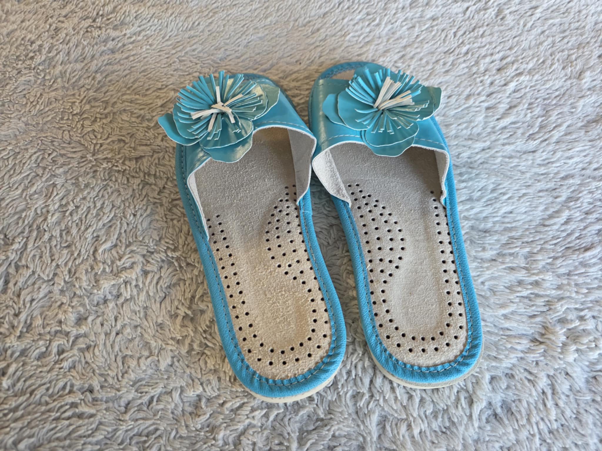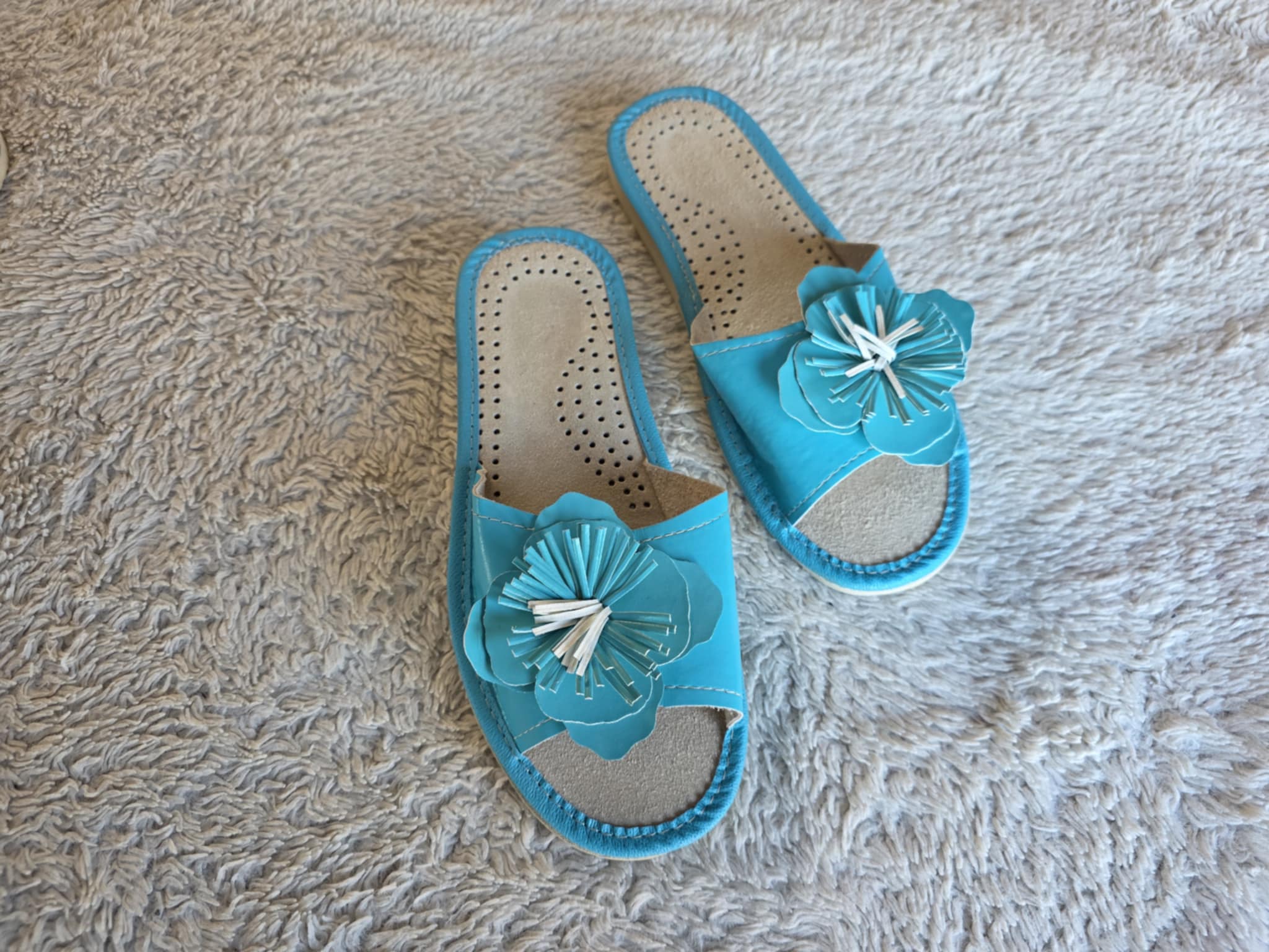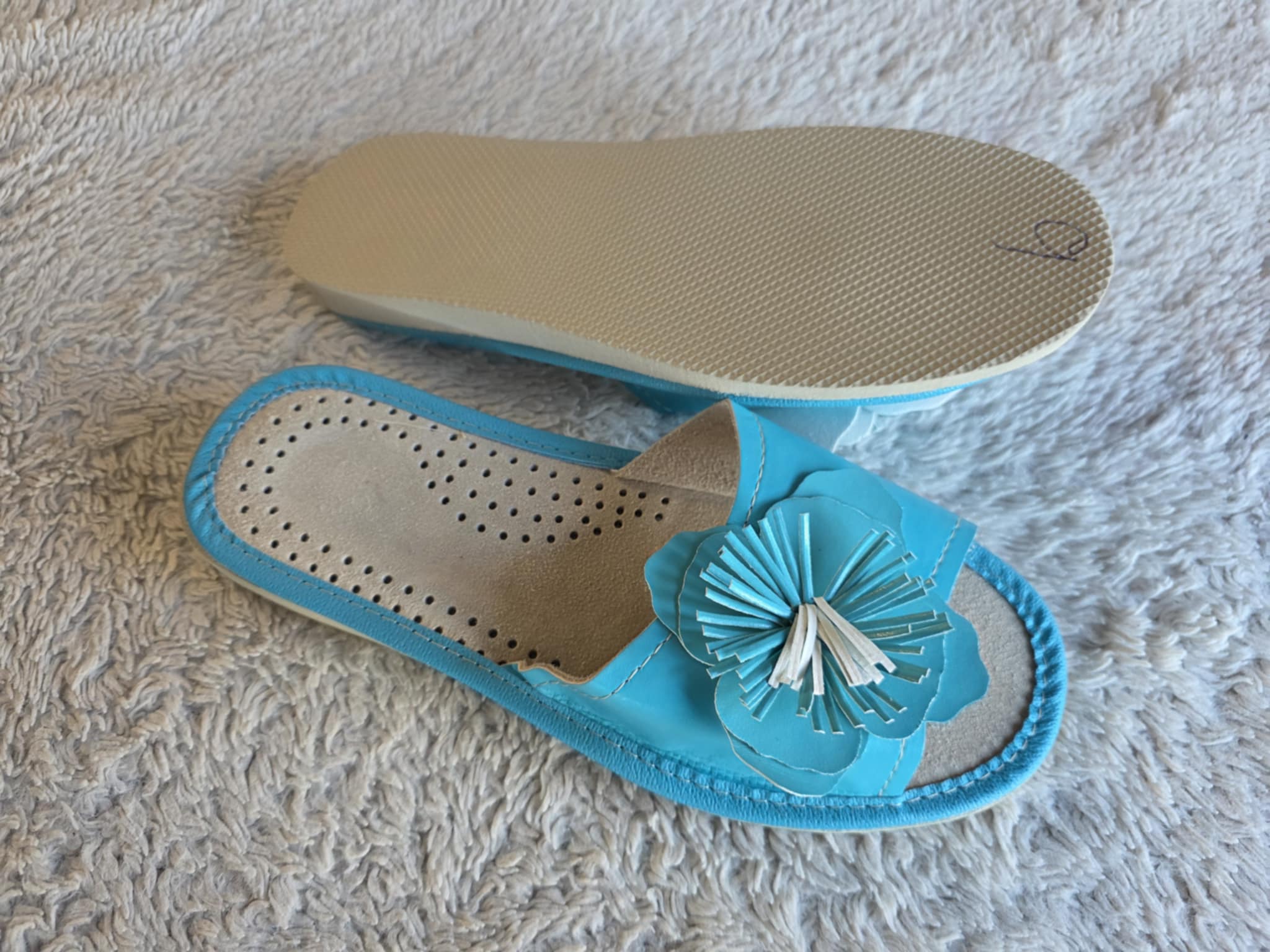 Gražios šlepetės. Eko odos šlepetės. Vidus pilnai odinis. Padas – avalynės