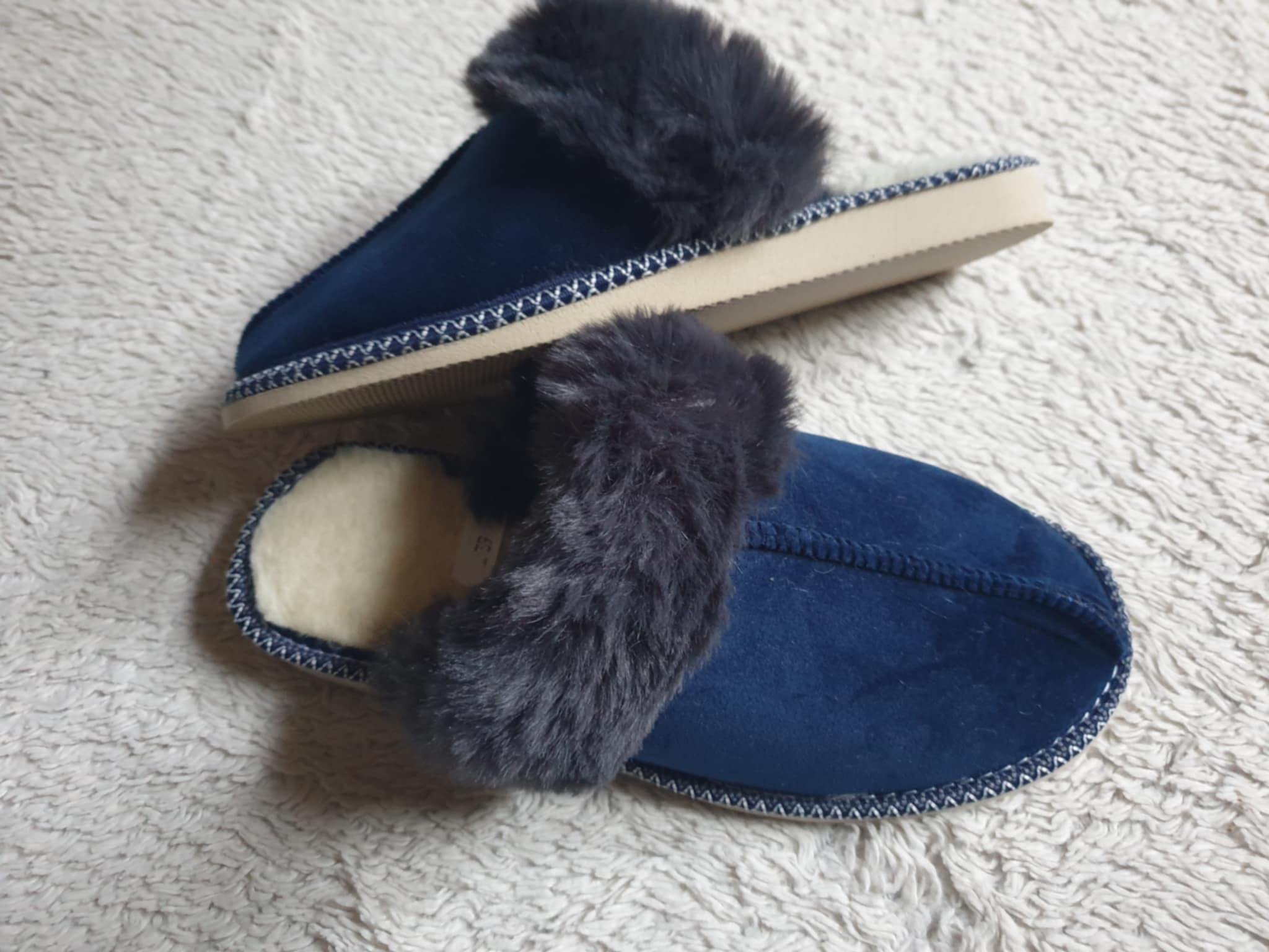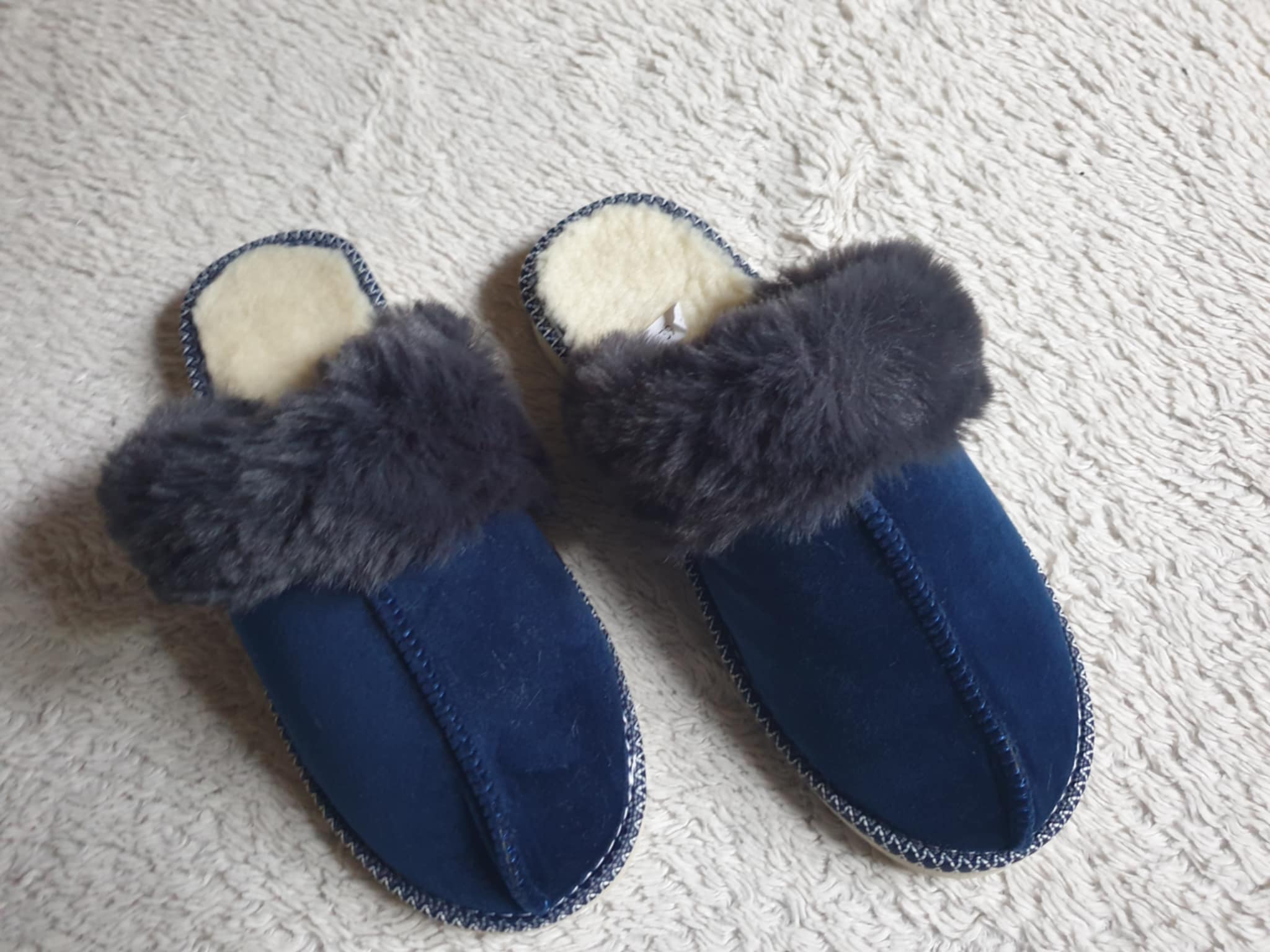 Pagamintos iš  tamsaus veliūro, šlepetės atrodo elegantiškai ir maloniai liečiasi prie odos. Šias šlepetes lengva užsidėti ir nusiauti. Jos yra lengvos, tad puikiai tinka kasdieniam nešiojimui. Viduje avių vilna. Padas avalynės.