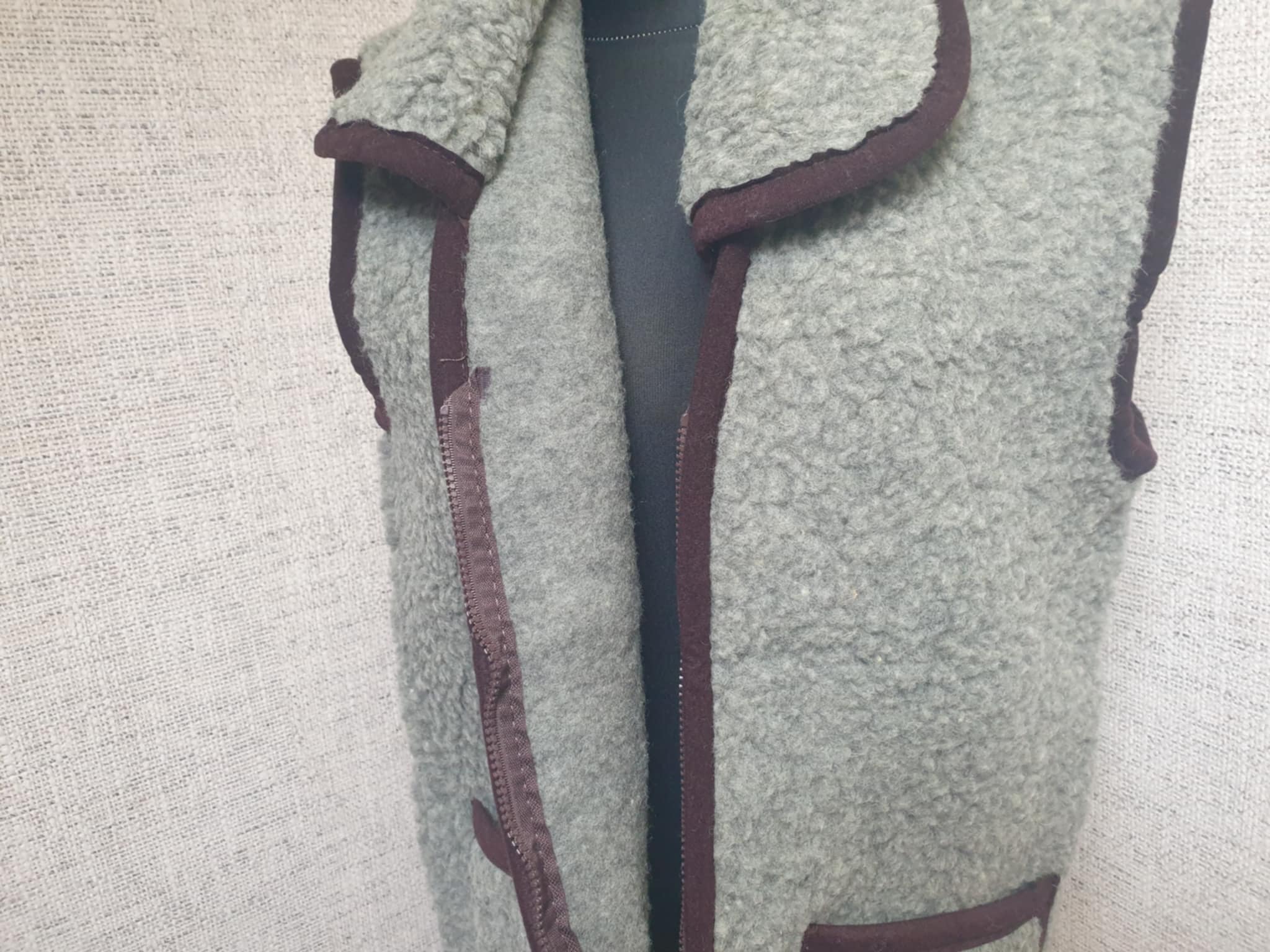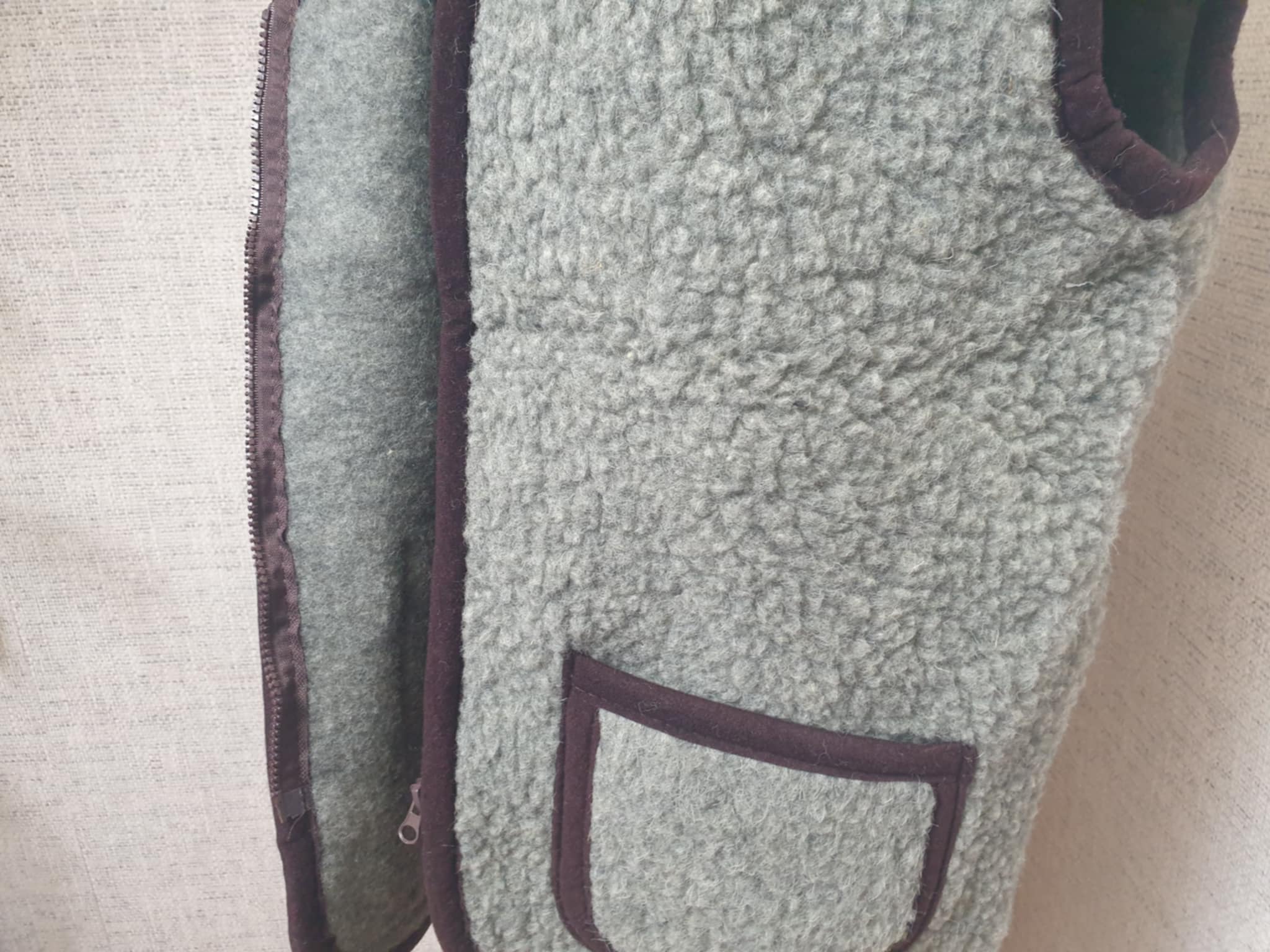 Natūralios vilnos liemenė su kalnieriumi. Tinka tiek moterims tiek vyrams. Vilna gerai išlaiko šilumą, bet leidžia kūnui kvėpuoti. Užsisega užtrauktuku. Kišenės išorėje.